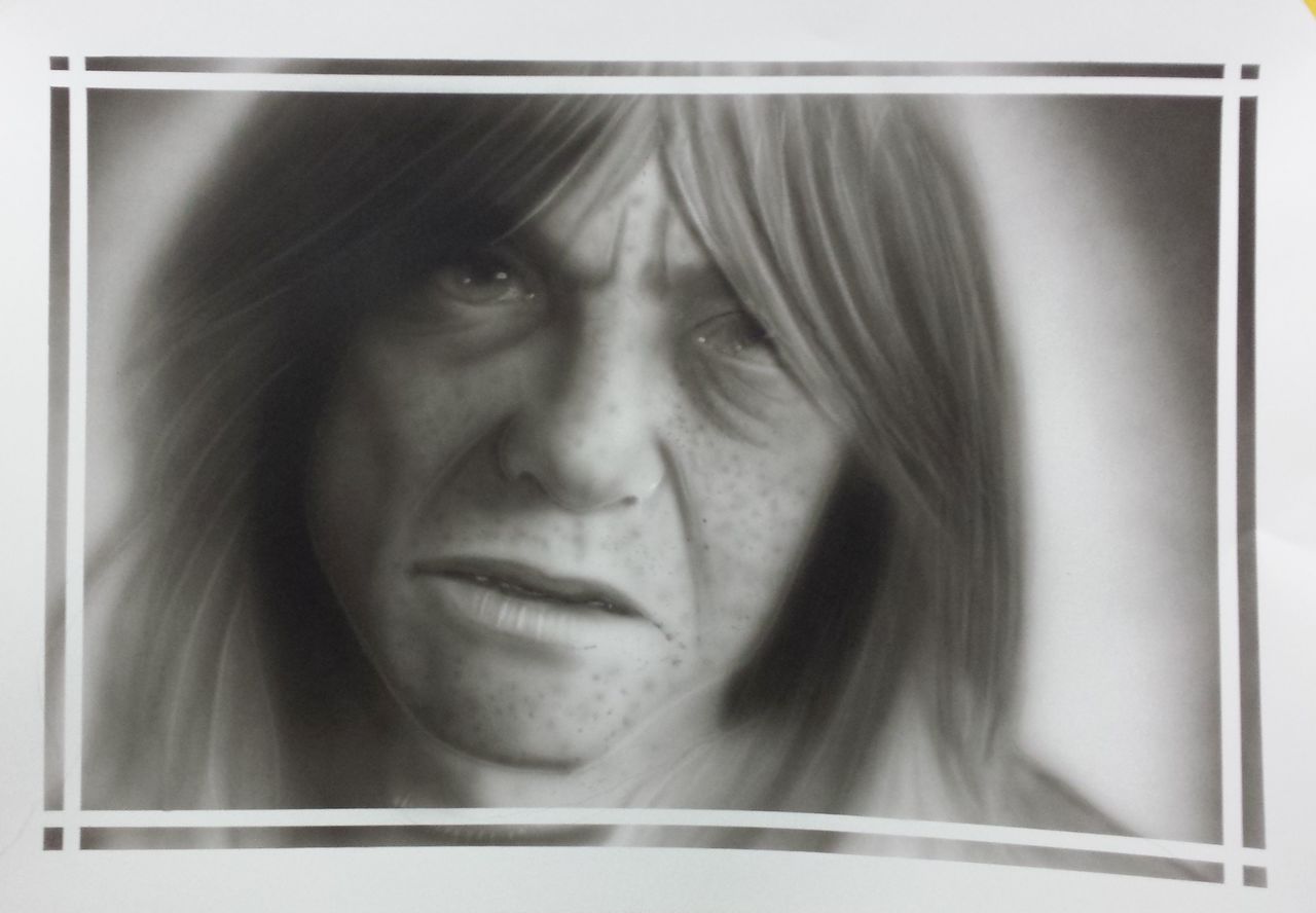airbrushportret van Malcolm Young (AC/DC)...