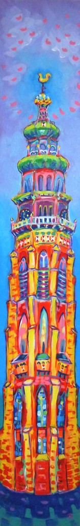 Abdijtoren de Lange Jan van Middelburg, in opdracht geschilderd voor in een voordeur-raam