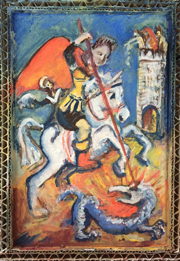 vrij naar icoon: Heilige Joris, die de draak doodt 17e eeuw