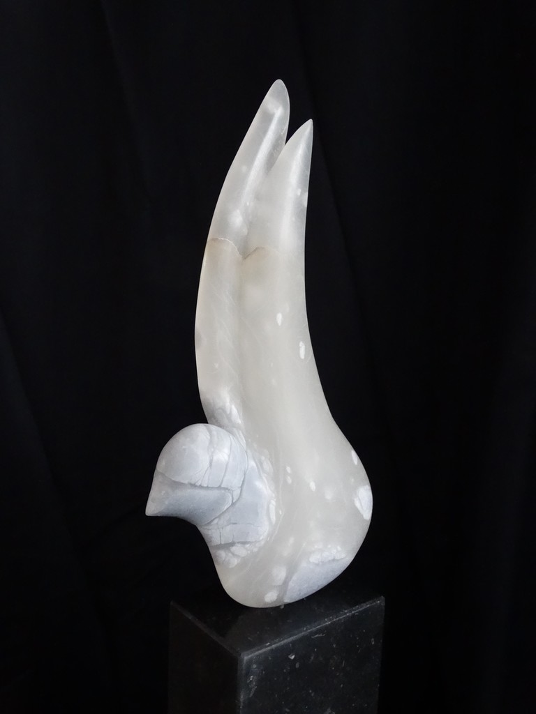 Wit Blauw Vogel Beeld Steen Beelden Duif Albast Beeldhouwer Karin Kuik Kerst