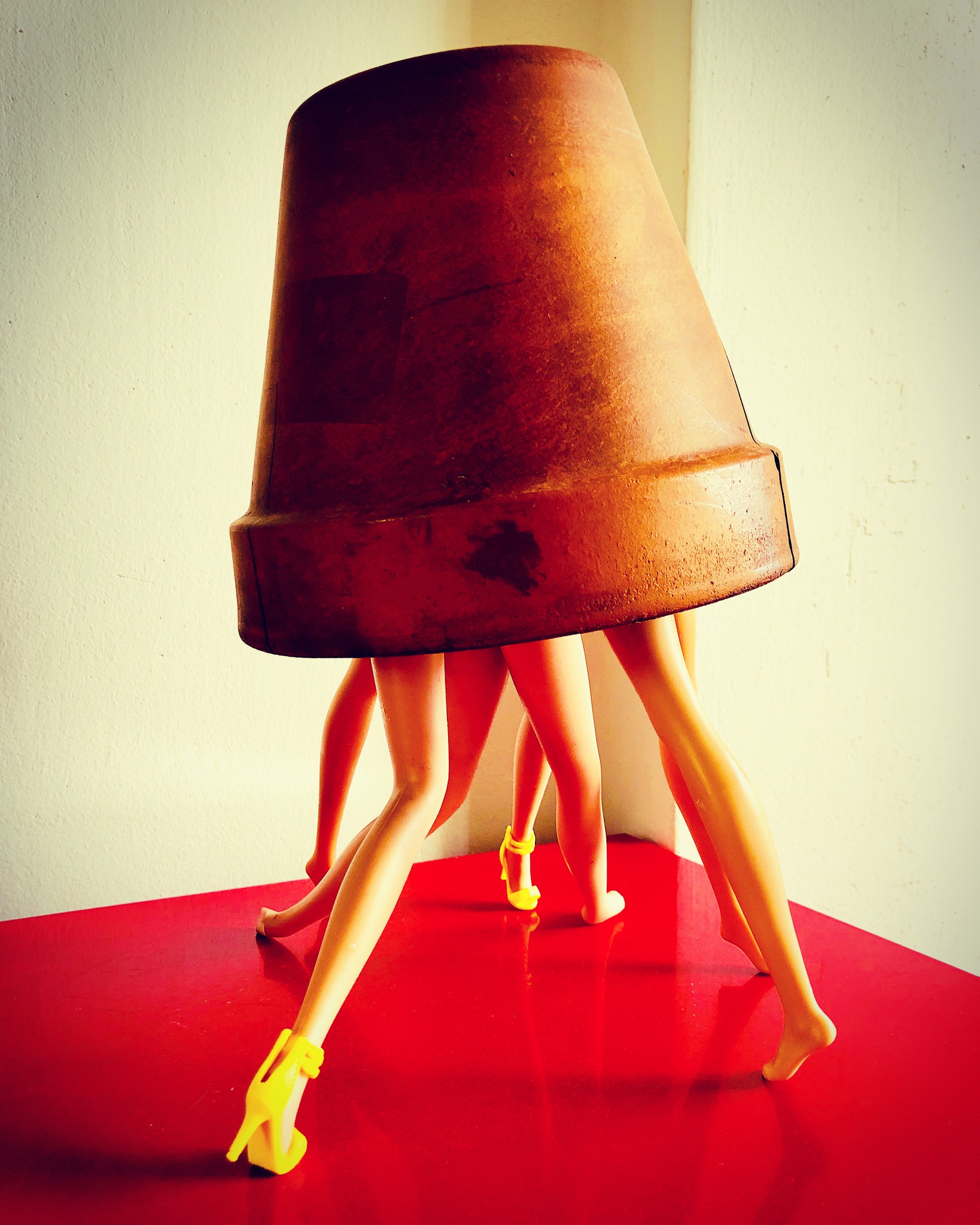 Art Kunst Venster Hoed Legs Benen Pop Kip Sculptuur Doll Kaal Plastic Dor Groei Rennen Gallery Dames Omgekeerd Barbie Concept Conceptual Roedel Leafless Upsidedown Hersenloos