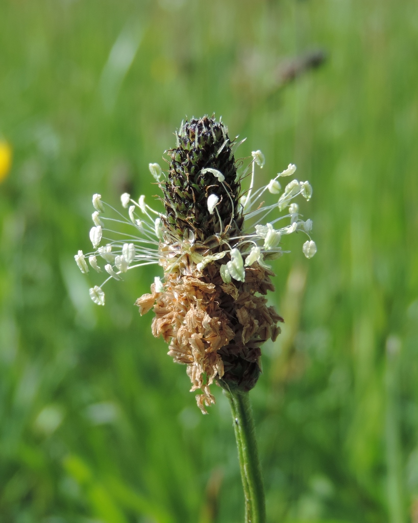 Smalle weegbree, een wilde plant een mooie bloem maar om dit goed te zien moet hij wel even worden uitvergroot.