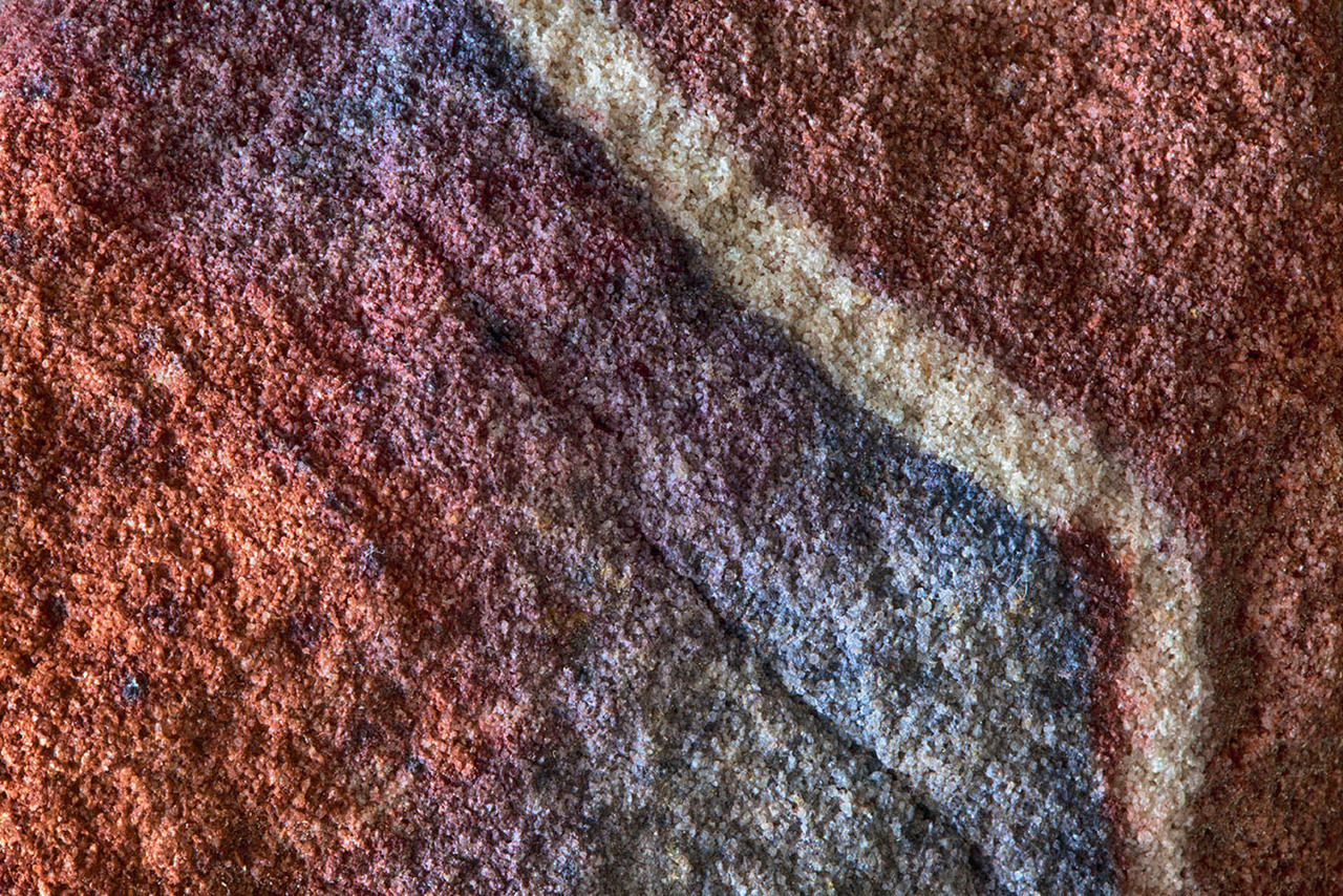 Macro opname van een kleurrijk stuk steen, gevonden bij Petra in jordanië.