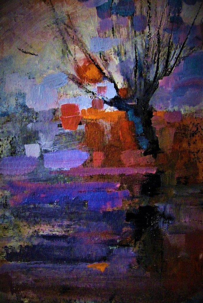 Painting Rivier Overijssel River Ijssel Deventer Schilderij Rood Blauw Paars