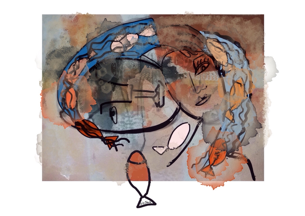 Mijn reactie op A4 kunstwerk van Abdelaziz Lourhraz met thema "Rondom water".