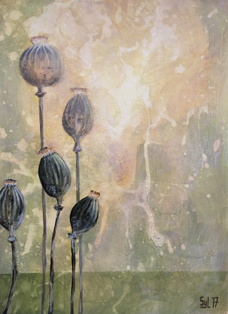 Acryl Oker Gemengde Techniek Papavers Papaverbollen
