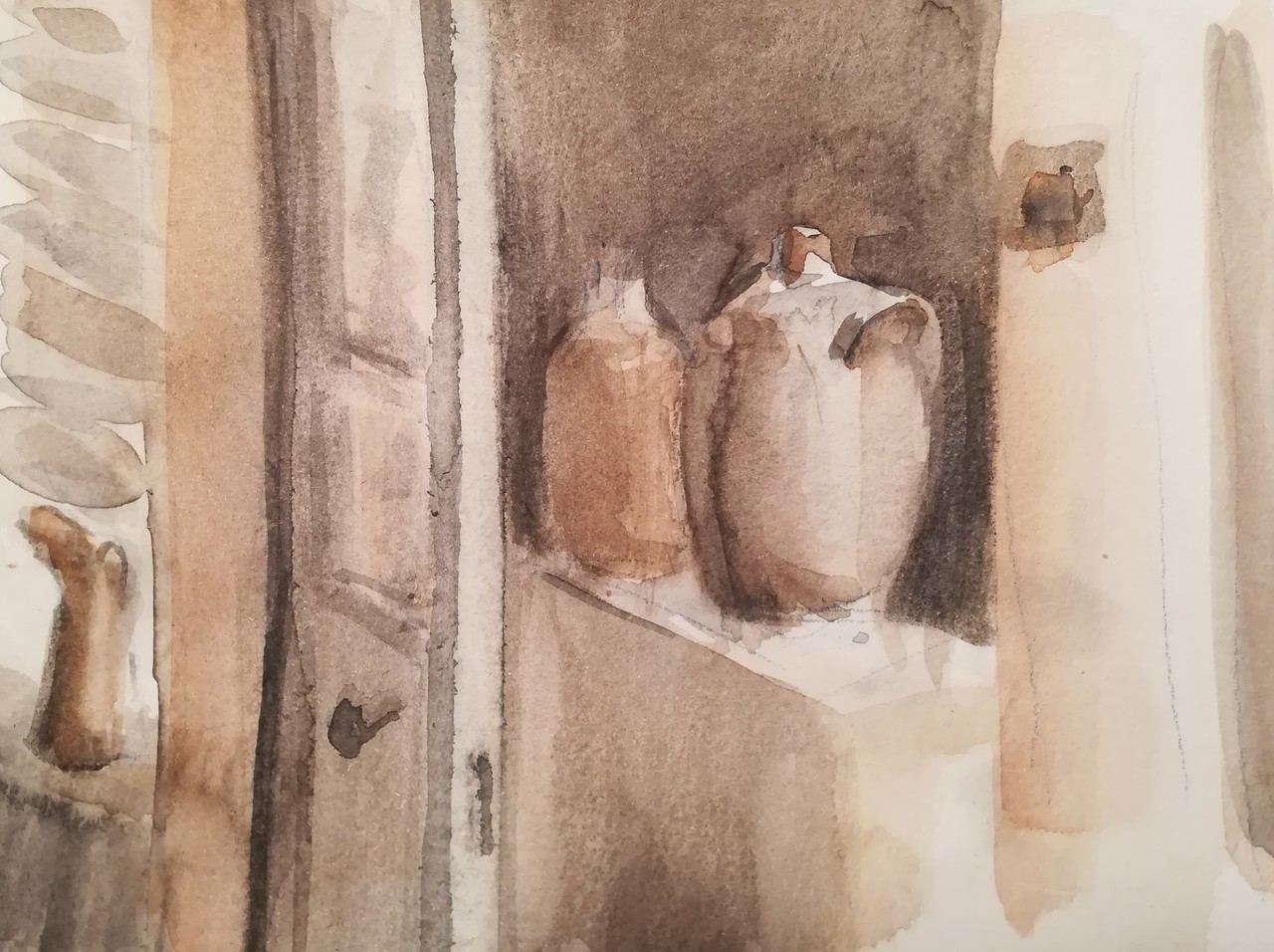 Monotone schildering van een hoekje in de keuken