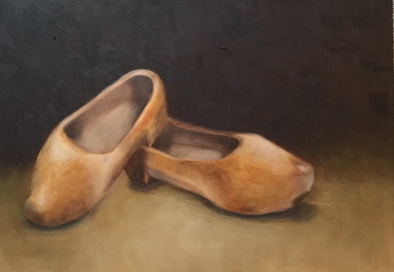 vrouwen klompen *Dit schilderij is met olieverf en penseel opgebracht. *De zijkanten zijn meegeschilderd. * Vernislaag is aangebracht mat/glans. *Houtenpaneel. *Het schilderij is gesigneerd op de achterkant met de eerste letters van mijn voor en achternaam (RP) Renate Peters en met de datum dat het schilderij is gecreëerd. Aan de voorkant is er de letter R (van Renate) te vinden rechts onderin.