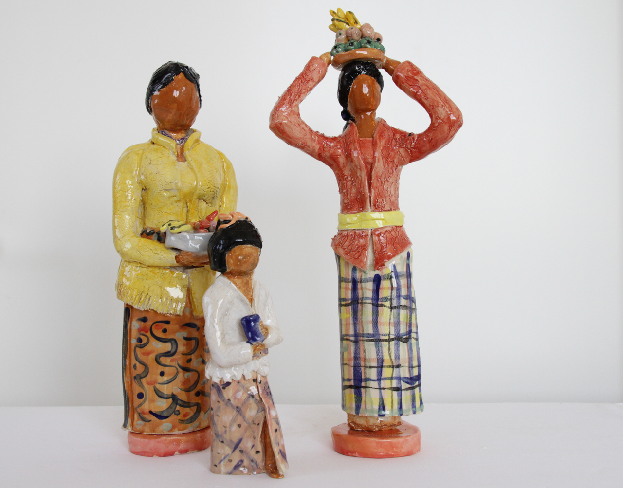 Drie generaties Balinese vrouwen in traditioneel kostuum