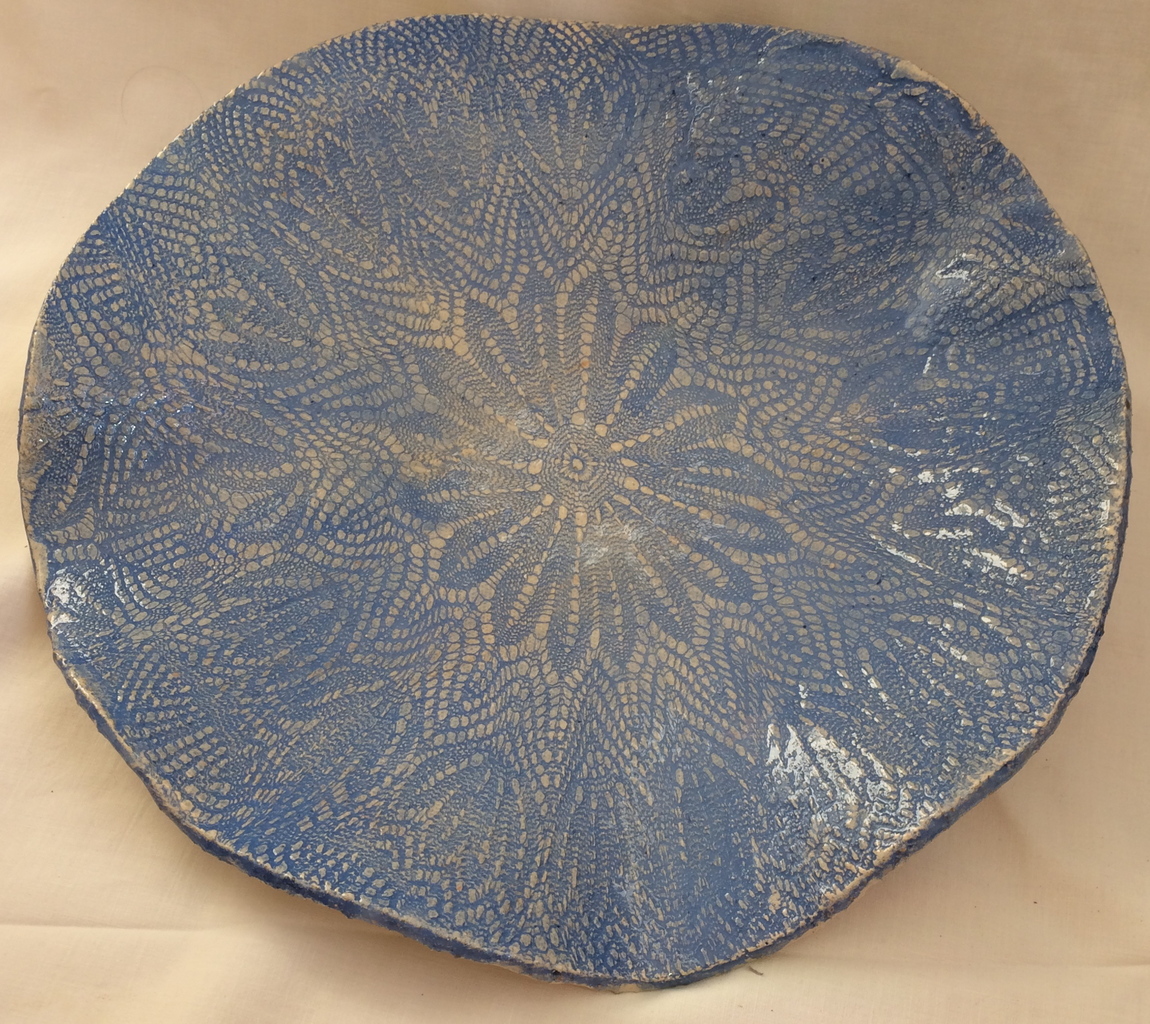 Schaal met kantpatroon in lichtblauw