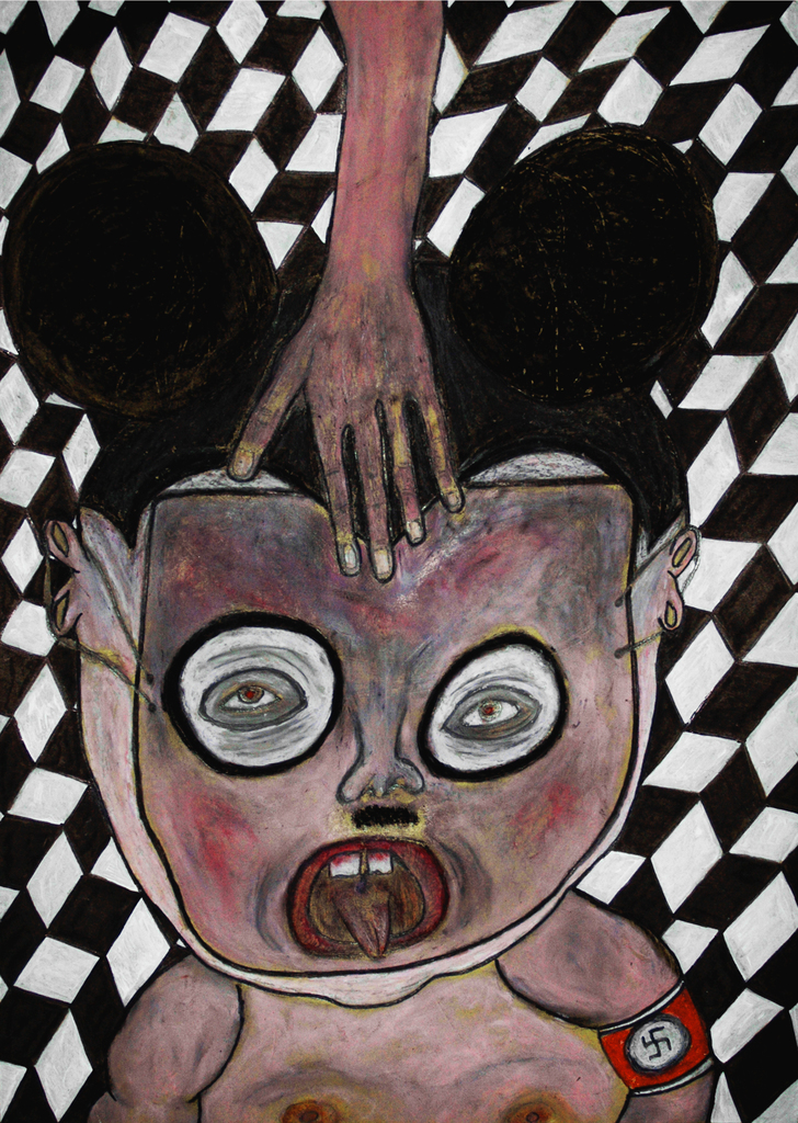 mixed media on paper ballpoint, pencil,paint, fine liner,marker, oil pastel