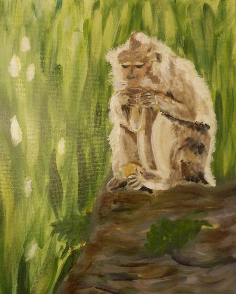 Aap op rots. Inspiratie om dit schilderij te maken was ons bezoek aan Gibraltar.