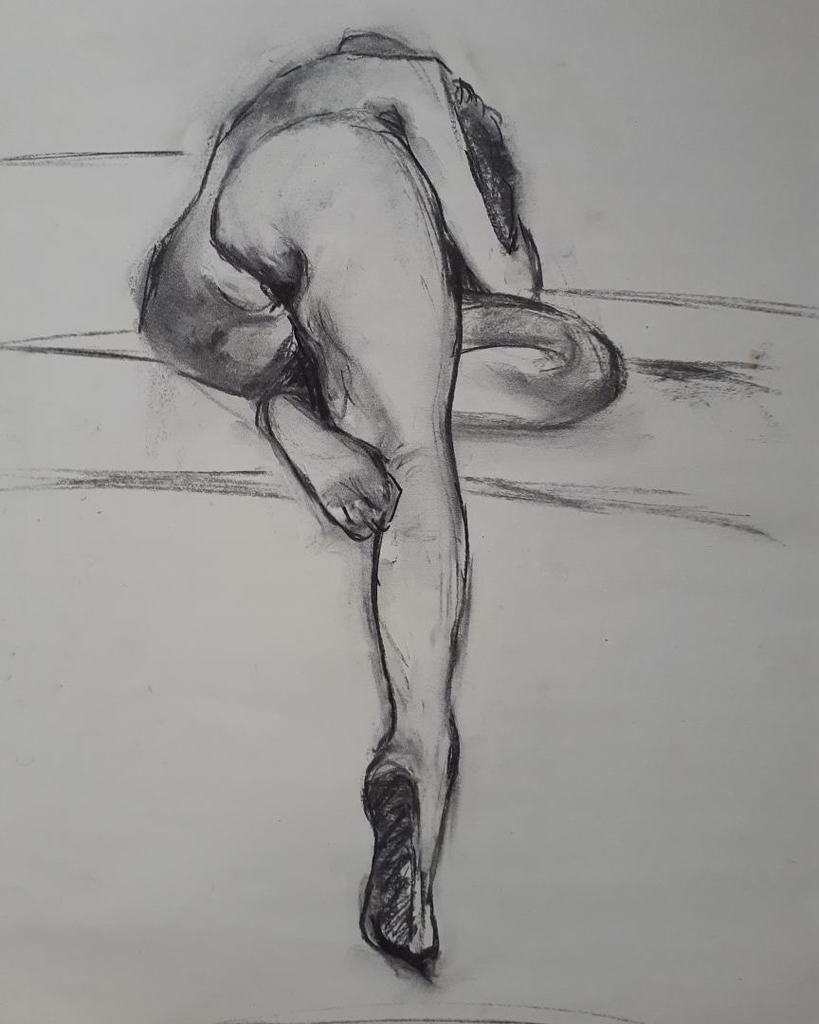 Figuratief Naakt Model Nude Houtskool Charcoal Studie Snel
