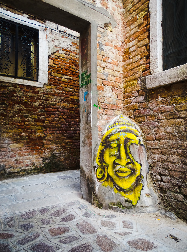 Een steeg in Venetie met ingemetseld masker. Oplage 10, gesigneerd, geprint op 308 gr. EPSON rag
