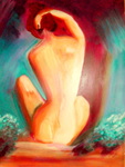 Boeddha: geschilderd zuiver uit een emotie op zoek naar de geestelijke en lichamelijke rust, vrede en stilte. Absolute zen en des te langer je kijkt, des te rustiger je wordt.