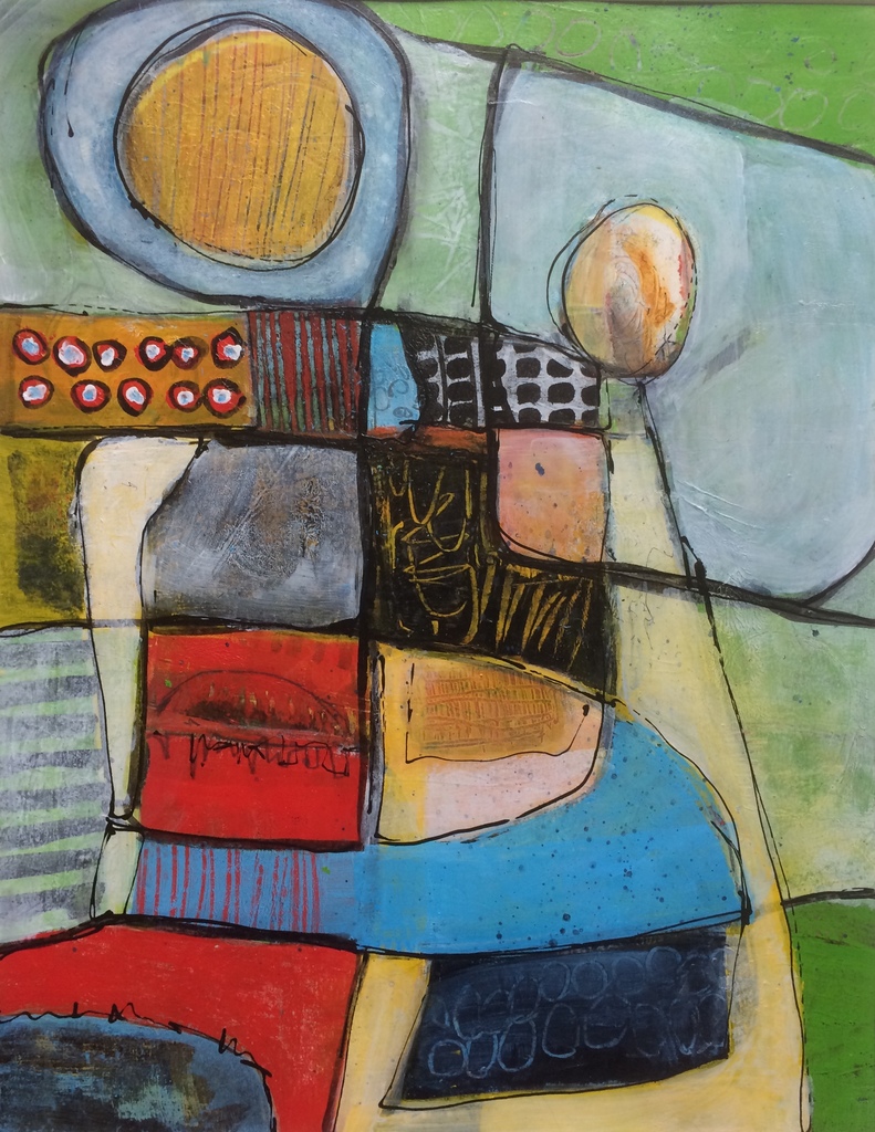 Ik maak schilderijen in gemengde techniek die met een zorgvuldige keuze van compositie, materiaal en kleur veel ruimte laten voor verbeelding.