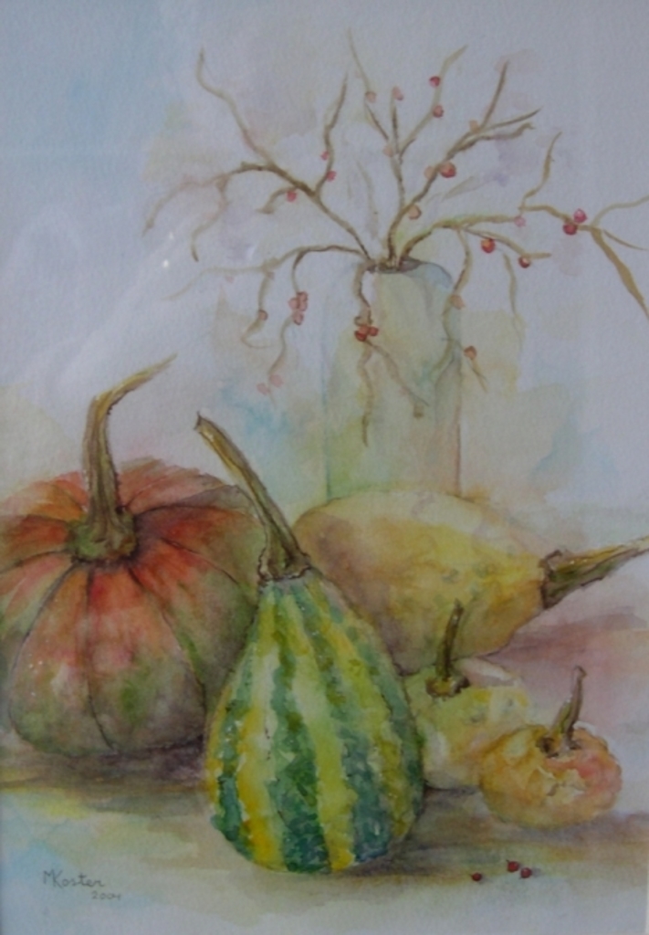 Kalebas Pompoen Najaar Aquarel Klein Herfstkleuren