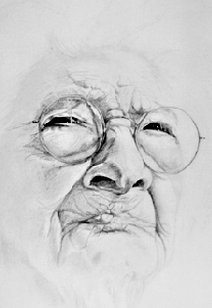 100-Jarige vrouw 3, potloodtekening. Ingelijst in passe-partout 80 x 80