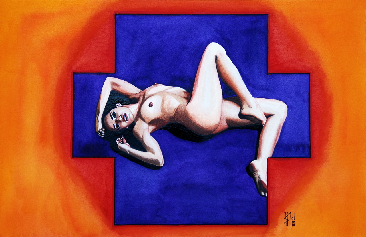 Meisje Oranje Paars Vrouw Naakt Nude Aquarel Purple Female Kruis Orange Body Cross Watercolors Bastiaanmol