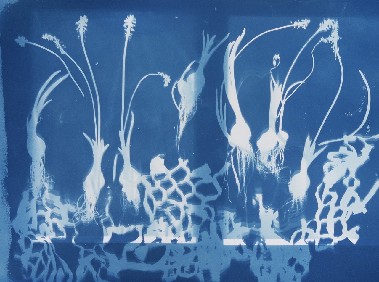 Cyanotype Blauwdruk Plantjes Tuin Organisch Foto Op Papier Blauw Wit