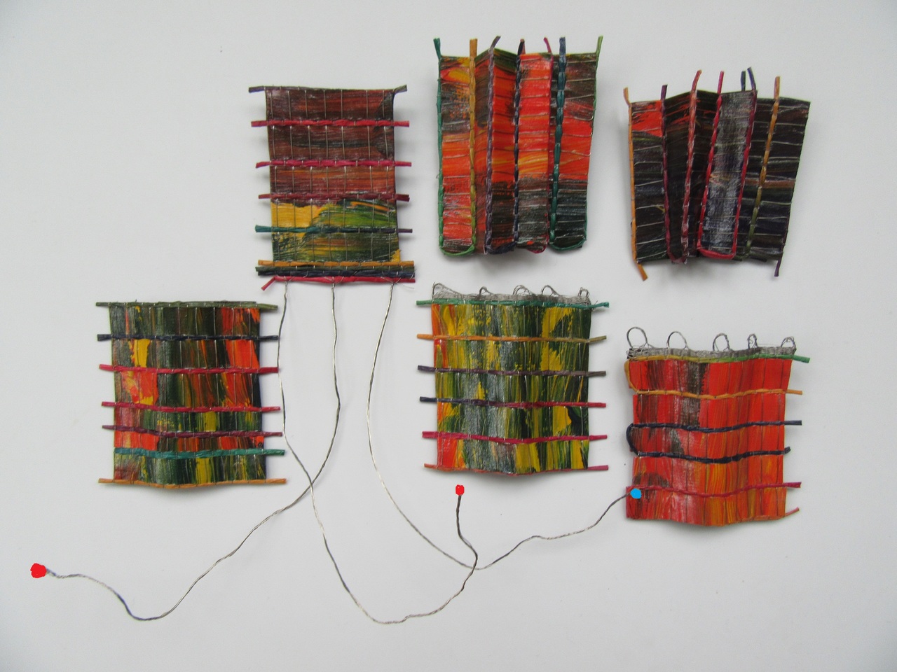 geweven broches met rvs draad, handgeverfd papiergaren en acrylverf