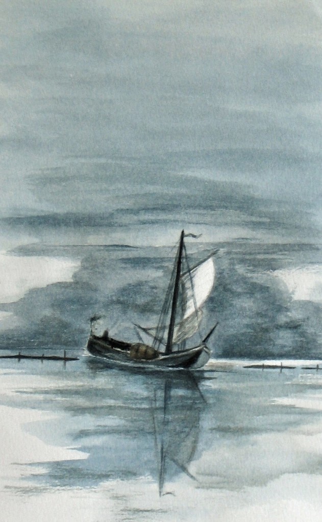 Aquarel Schip Vlieland Wad Zeilend Willemien