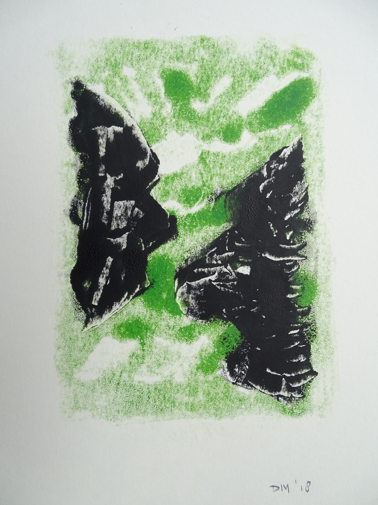 "no comment" monotype / monoprint, 2-fasen, afmeting figuur 11x15 cm, editie 1/1.
