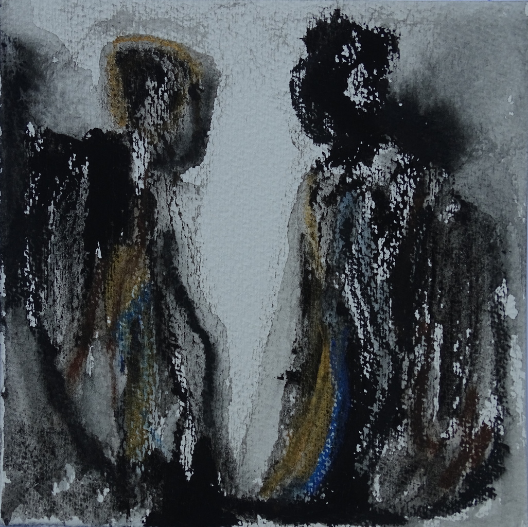 'In duet met mijzelf'. (opgedragen aan Hinne-Richt van der Held) Jeanine Keuchenius, beeldend kunstenaar, danser, performer. Geboren in 1953 in Indonesië. Achtergrond: beeldend therapeut (zelfstandig en binnen psychiatrie) en maatschappelijk, pastoraal werk. Mijn motto is: In duet met mijzelf. Ik ga af op mijn zintuigen en beweeg me naar binnen, terwijl ik mezelf besluip. Ik tuimel in mijn schilderijen, ga het duister in en kom lichtvoetig of stampend te voorschijn.