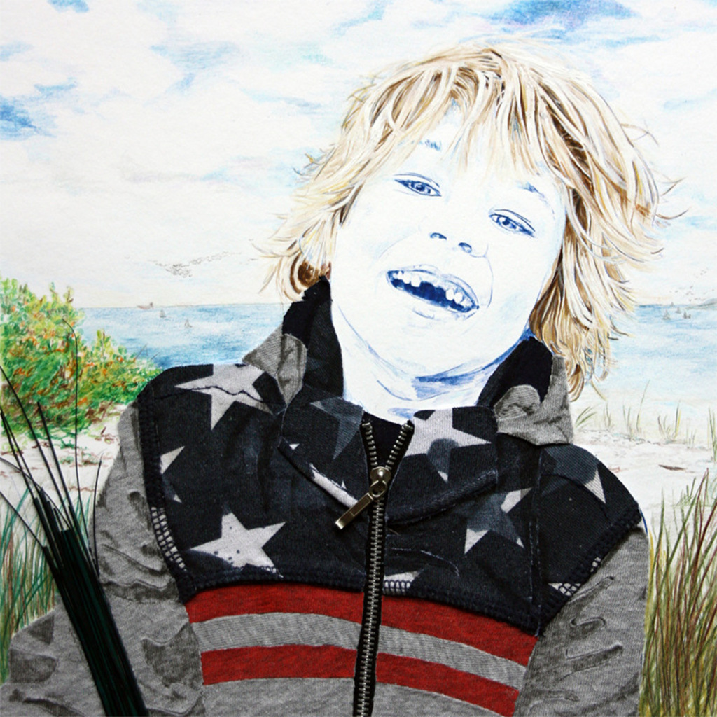 Kinderportret in opdracht "Bas" Gemengde techniek op papier 52 x 52 cm