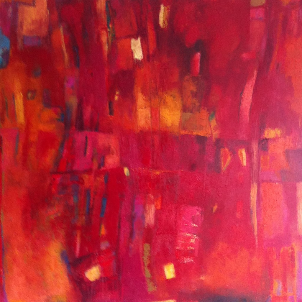 Abstract werk met roden die de warmte en sfeer brengen van thuis.