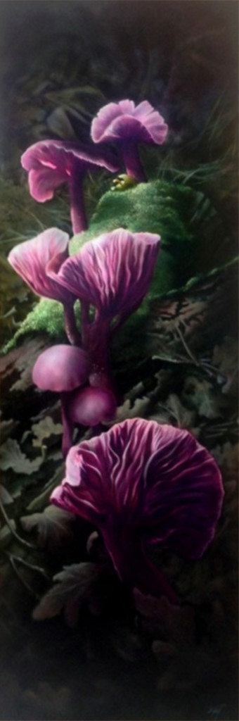 Deze rodekool-paddenstoelen staan te pronken in het licht van de maan.