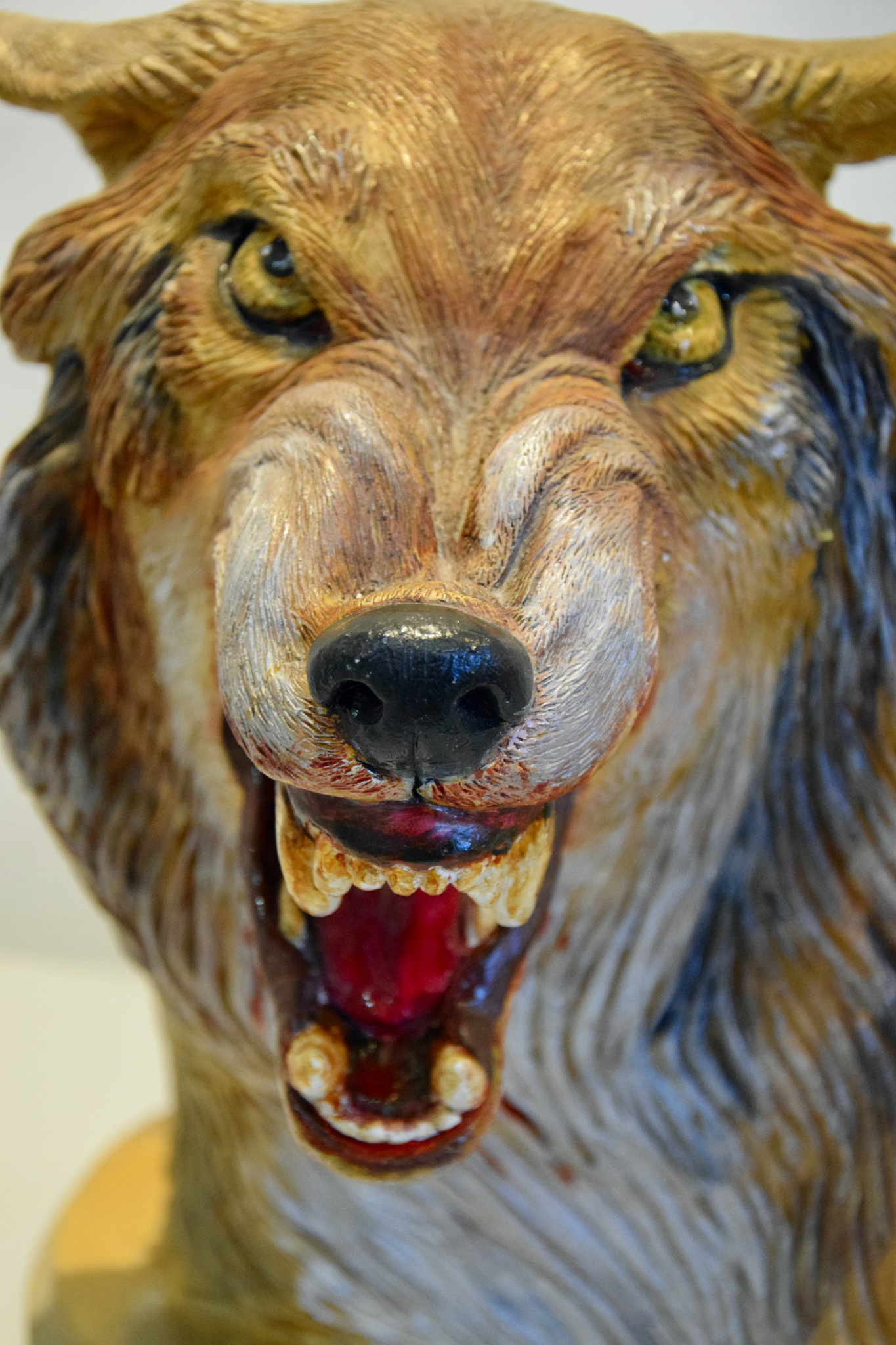 Keramiek borstbeeld van een Woeste Wolf. Een beeld dat laat zien dat een Wolf gevaarlijk kan zijn. Opleveringsdatum-------2006
