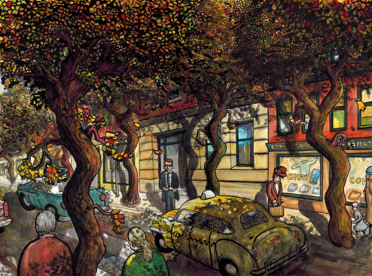 Watercolor City Trees Vintage