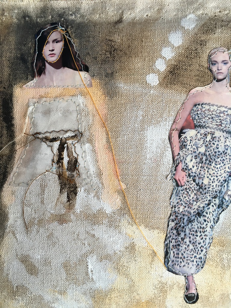 Voor mijn textielcollages is het geselecteerde beeld uitgangspunt. Door gebruik van verf, textiel en foto's kom ik tot een technisch en artistiek nieuwe creatie. Tot een beeld dat je stil doet staan bij het leven van de vrouw van nu in relatie tot schoonheid, verlies en verbondenheid. In mijn dessinontwerpen speelt het verhaal achter het ontwerp een belangrijke rol. Textiel loopt als een rode draad door mijn leven en werk.