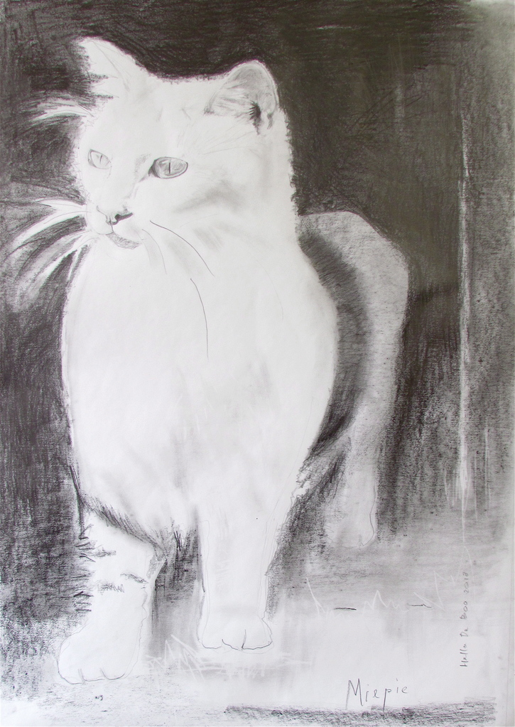 Portret Dier Kat Tekening Portrait Drawing Poes Cat Animal Blackandwhite Zwart-wit