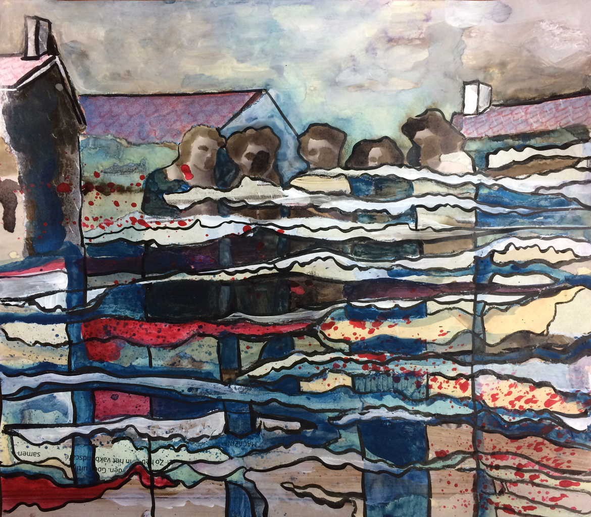 Kleurig Water Collage Inkt Verf Biennale Watersnood Noord-holland Gemengdetechnieken Wassend