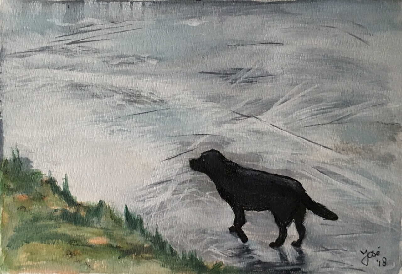 Pentekening met acryl. Luna op het ijs, februari 2018