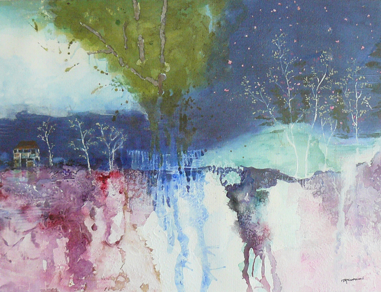 Aquarel Sterrenhemel Bruggetje Ravijn