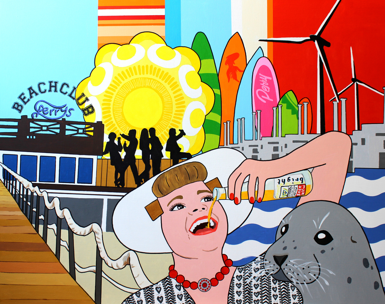 Modern Kleurrijk Restaurant Zeeland Brouwersdam Bier Drinken Amstel Zeehond Windmolens Klederdracht Popart Zeeuws Bright Strandtent Zeeuwsmeisje Beachclub Zeeuwsknopje Mirjamgriffioenart Mirjamgriffioen Islandart Caribbeanartist Perry''''s Scharrendijke