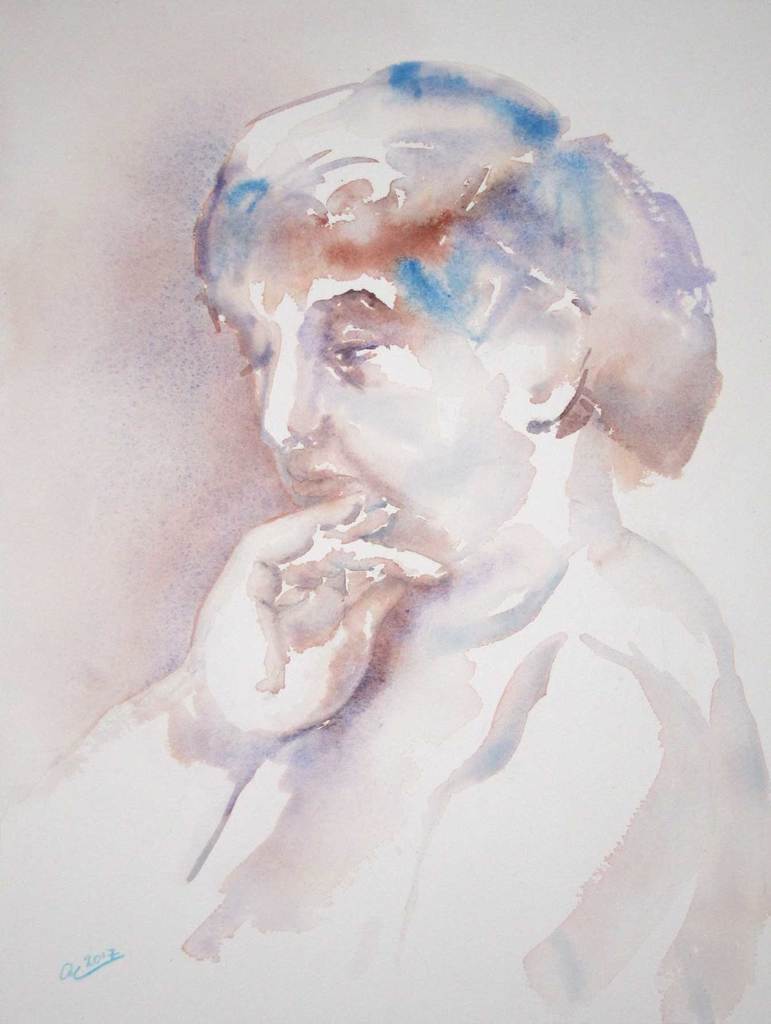 Vrouw Portret Naakt Aquarel