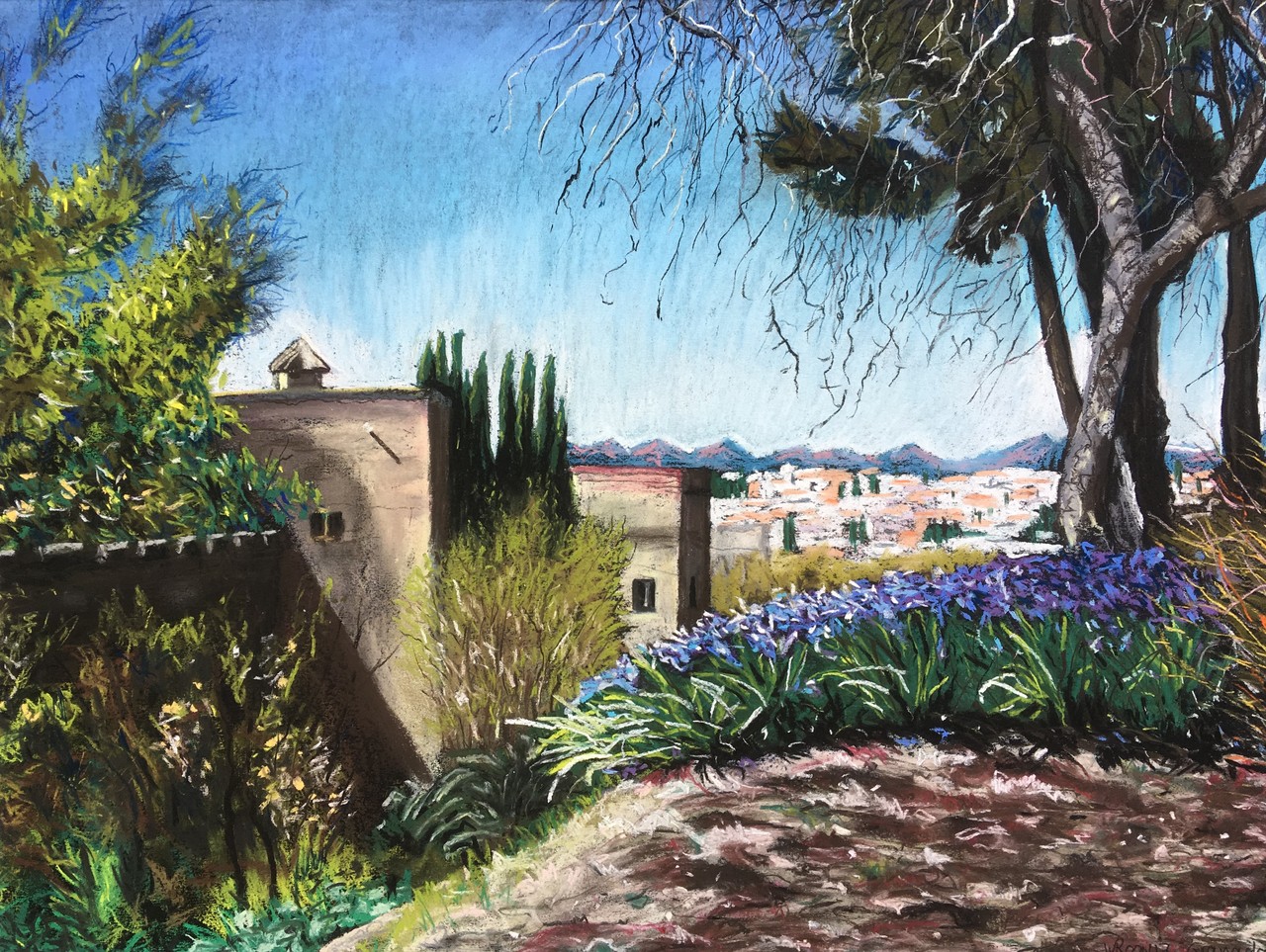 Zicht op Granada met rechts een stuk van het Alhambra.