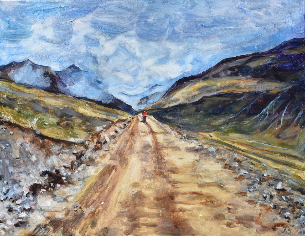 Schildering van een landschap in Peru, in opdracht.