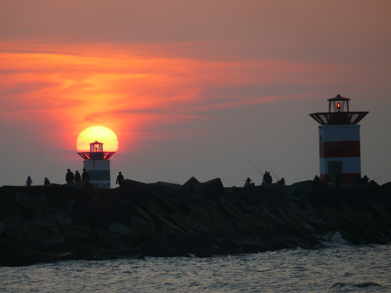 Het havenlicht met de AVONDZON op het Zuidelijke havenhoofd van Scheveningen