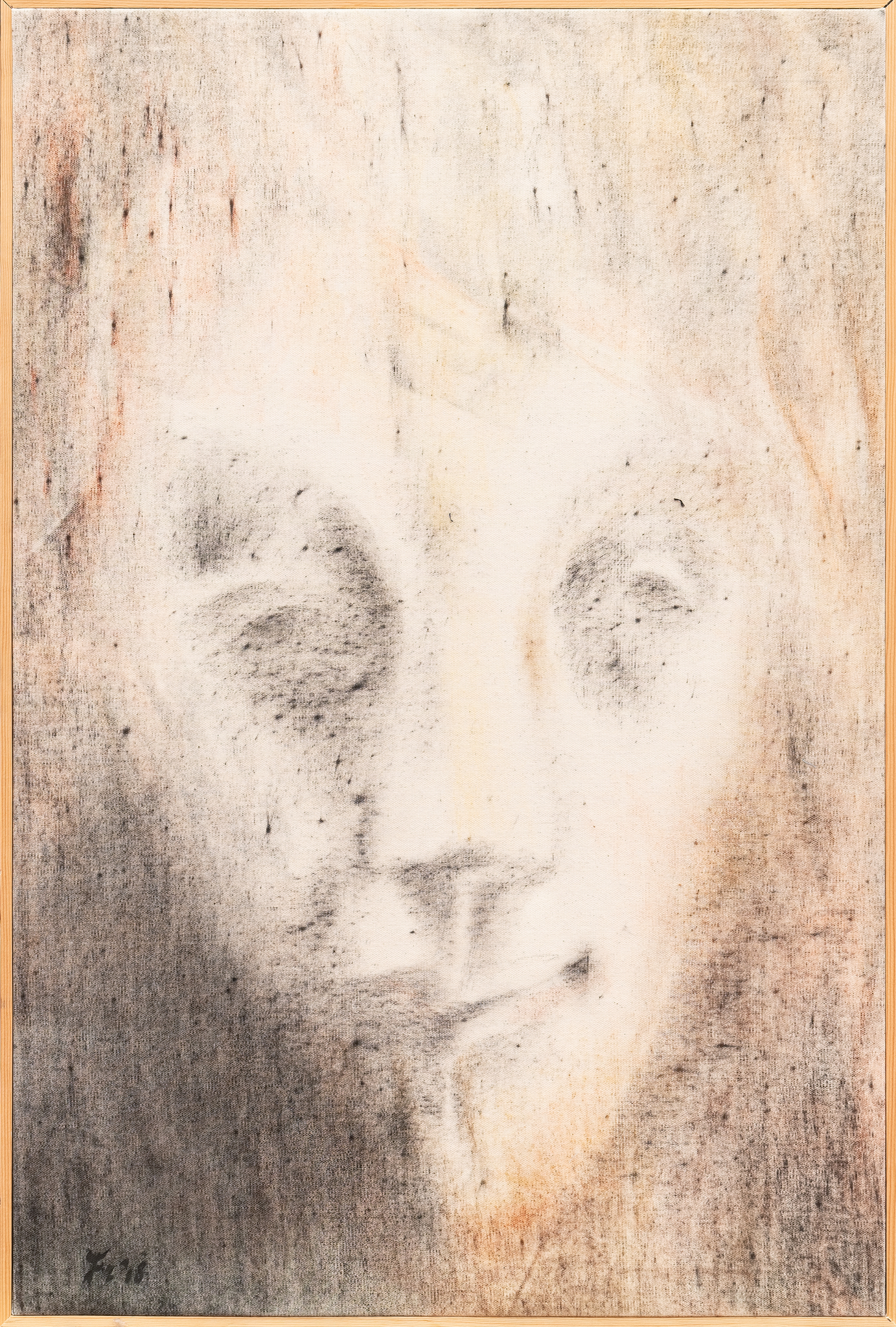 Spiritueel Gezicht Tekening Doek Oliepastel Pastel Houtskool Gelaat Kleur Filosofisch