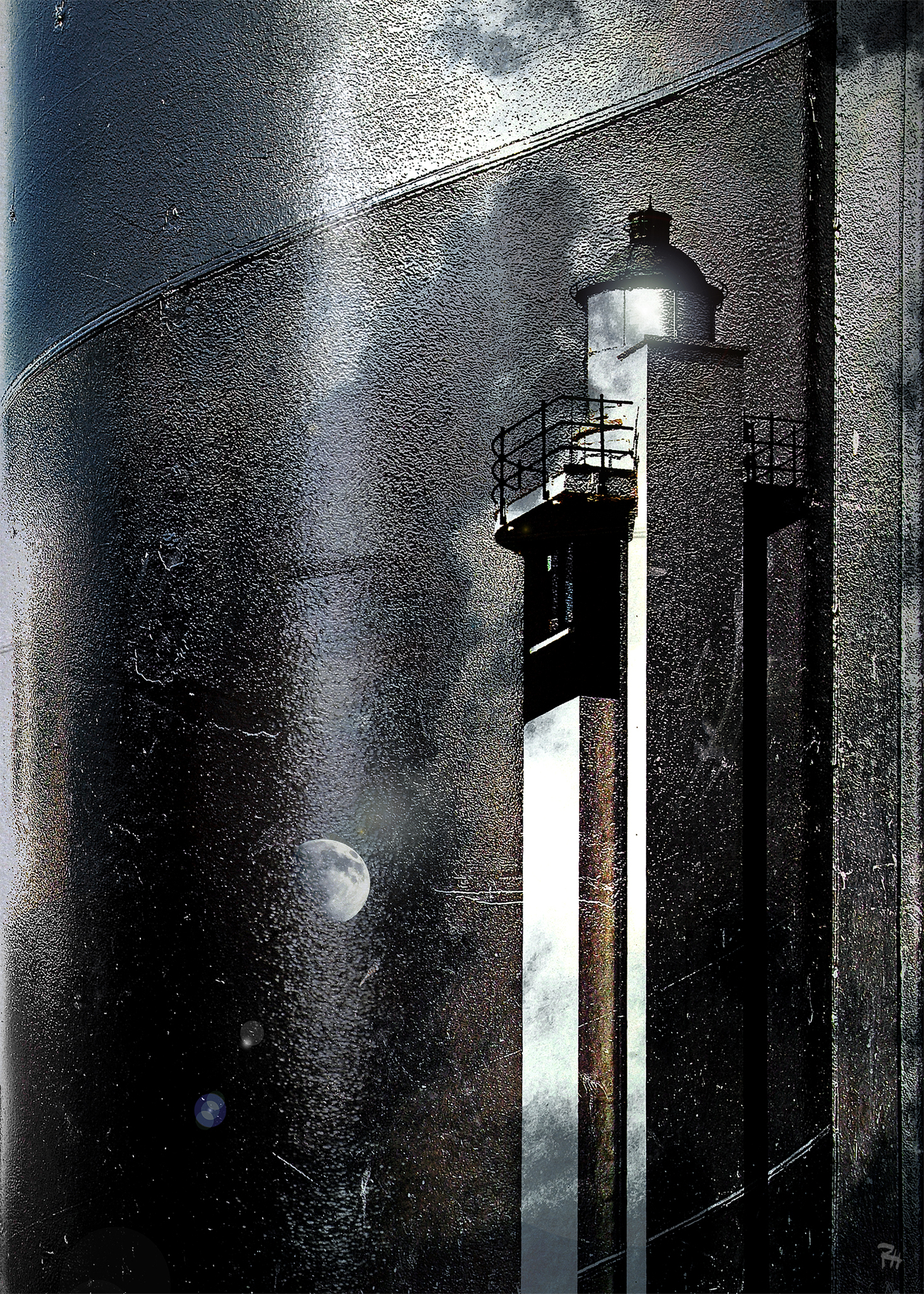 Duister is oorsprong en bestemming, licht een intermezzo. (Ingmar Bergman) Hintjens creëert digitale composities die verhalend, surreëel zijn.
