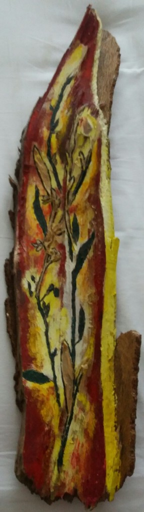 Bloemen op houtschors