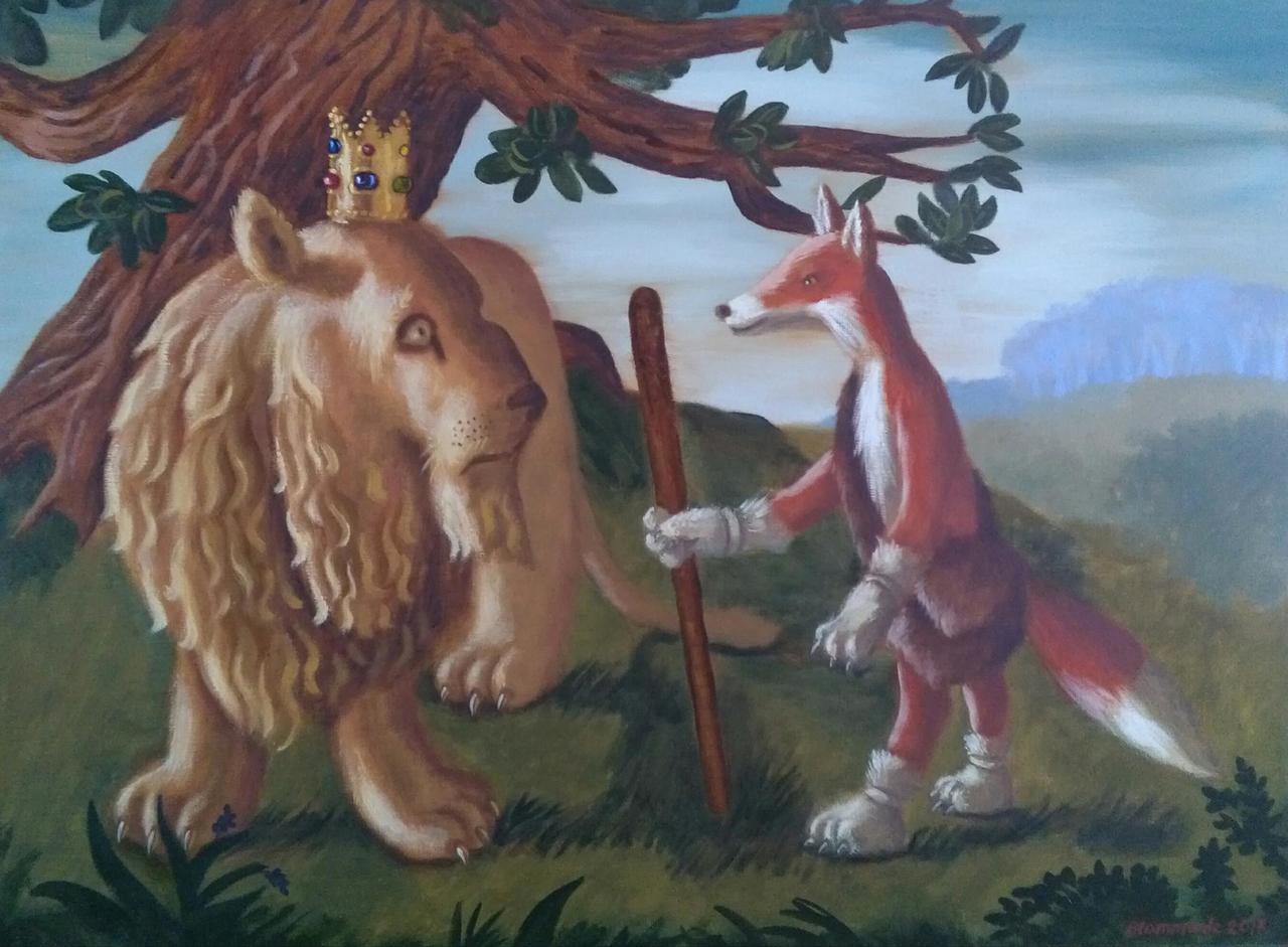 Olieverfschilderij van Reinaert de Vos en koning Nobel
