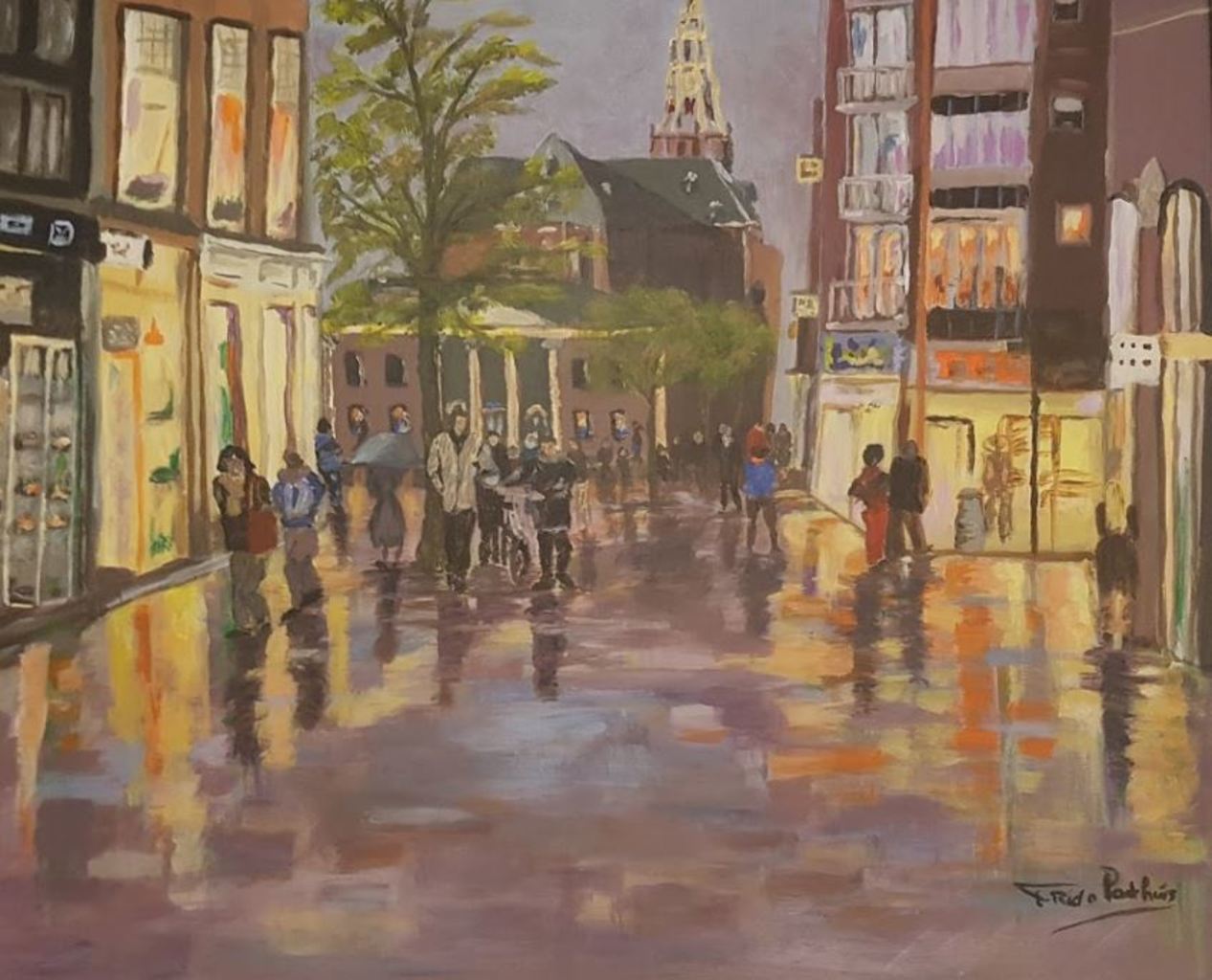 Groningen op een voorjaarsdag in de regen, ingelijst