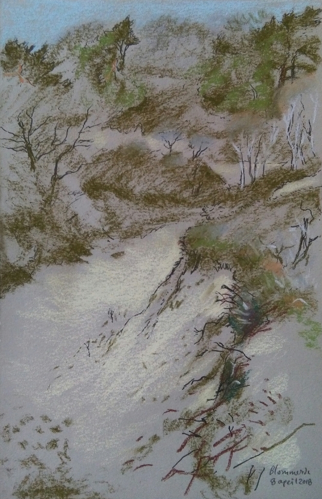 Pasteltekening van duinlandschap in Meijendel, Den Haag