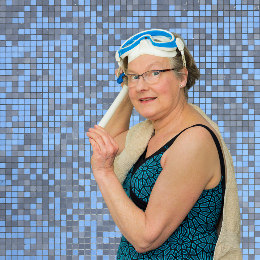 Kunstafdruk in passe-par-toute Ik heb last van artrose. Het zwemmen in het warme water doet mij gewoon goed. Ik wil wel zolang mogelijk mobiel blijven.